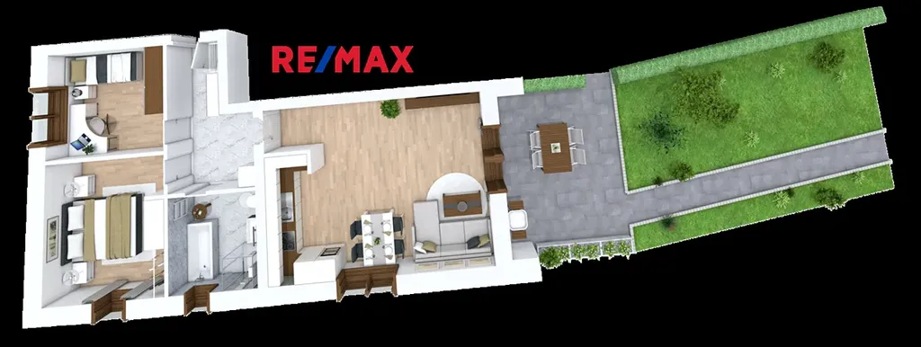 Byty disponují velkorysými terasami pro relaxaci, zatímco přízemní byty, jako je tento byt č.1, nabízejí vlastní zahrádky – ideální pro rodiny s dětmi nebo milovníky grilování.