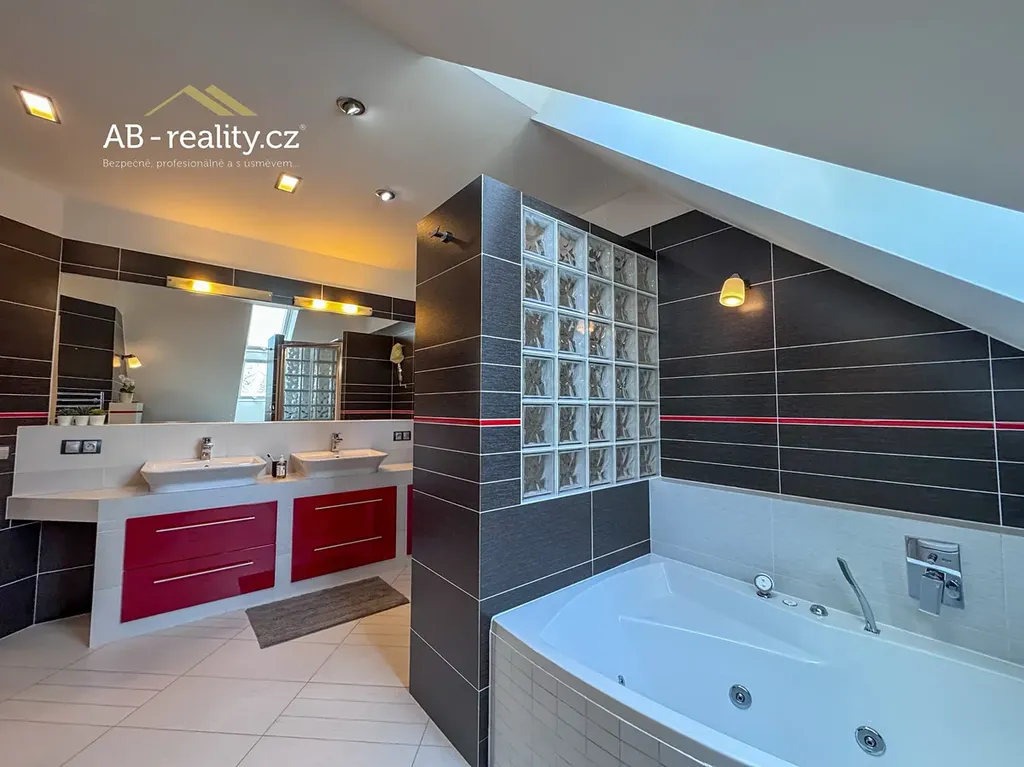 I. NP – hlavní vstup do domu se zádveřím, prostorná obývací hala s krbem a dvěma vstupy na terasu, kuchyň s jídelnou, koupelna, samostatné WC, menší sklad. Dále druhý samostatný vchod do domu se vstupní chodbou, ložnicí a koupelnou. II. NP – 4 x ložnice s terasou, koupelna. Ložnice situovaná na jižní stranu je vybavena klimatizací. III. NP podkroví – jedna velká prostorná ložnice (26m2). Všechny místnosti domu působí velmi vzdušně a nabízejí dostatek prostoru a soukromí. Dům je posazen na vlastním udržovaném pozemku s celkovou plochou 2015 m2. Na zahradě je samostatně stojící prostorná garáž pro dva vozy. Místo pro parkování dalších vozů je připraveno na vlastním pozemku u domu. Celkový technický stav celého objektu je velice dobrý i díky skutečnosti, že dům byl původními majiteli málo využívaný. Nutno vidět. Otop vody zajišťuje elektro kotel a tepelné čerpadlo, ve velké části domu je instalováno podlahové vytápění. Ohřev vody zajišťuje elektrický boiler. Jedná se o příjemné a ničím nerušené bydlení v klidné lokalitě na úpatí Krušných hor. Dojezd do Teplic 10 km, napojení na D8 25 km.