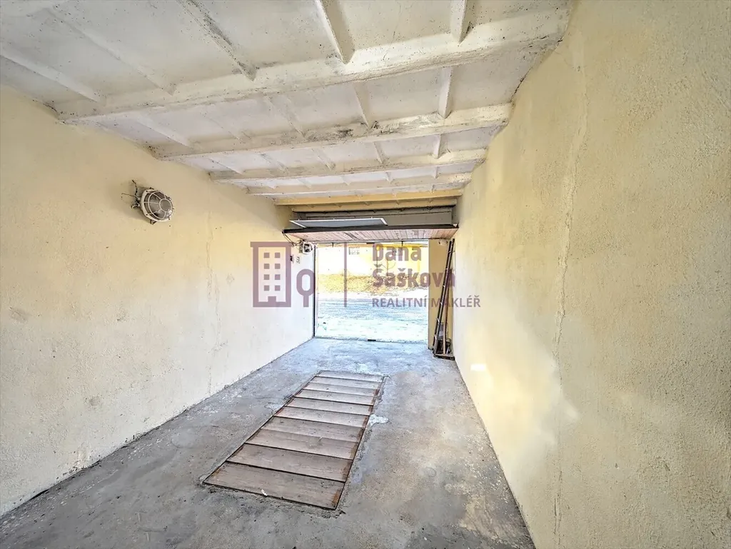Podlahová plocha 18 m2, montážní jáma, zavedená elektřina včetně motorového proudu, uzamykatelná dřevěná křídlová vrata.