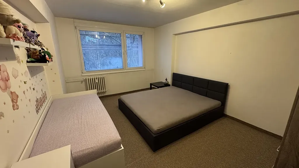 Dispozice nabízí obývací pokoj (plovoucí podlaha), prostornou ložnici, kuchyň, koupelnu (zděné jádro, vana, dlažba, obklad), chodbu a komoru v bytě, což je velmi dobrý úložný prostor či šatna. Dále k bytu náleží sklepní drátěná koje v suterénu domu. Přístup do bytu vede přes uzamykatelnou chodbu oddělenou od výtahů a schodiště, v domě jsou dva prostorné nové výtahy.