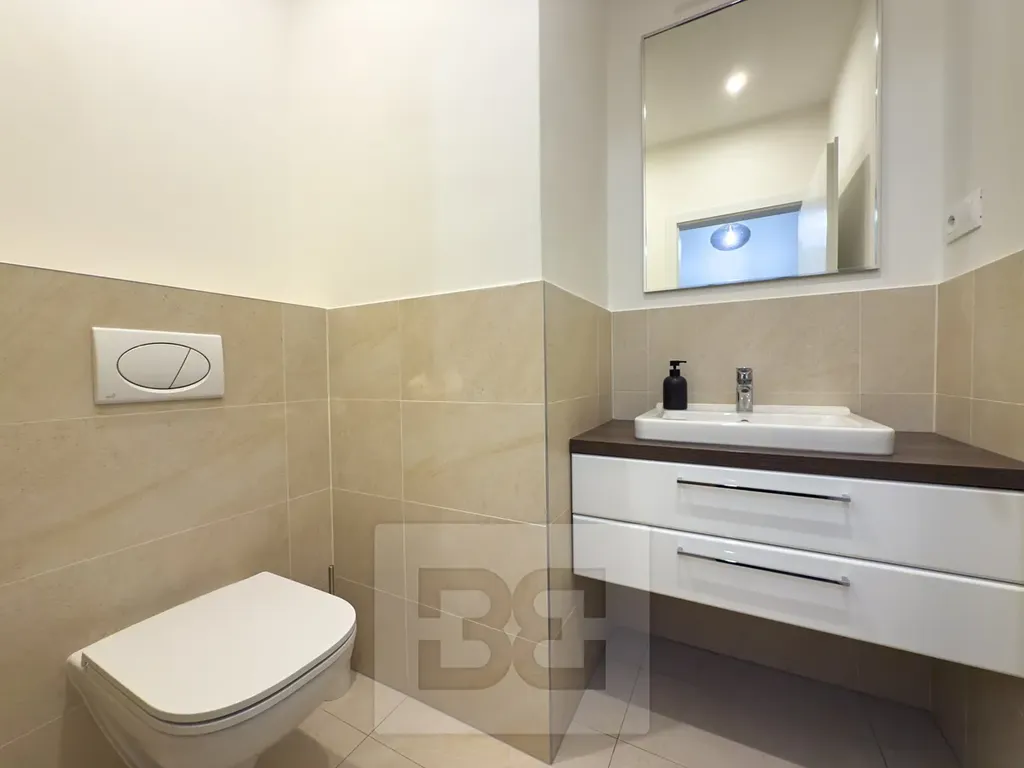 Koupelna je vybavena vanou, pračkou a sušičkou. Toaleta je umístěna samostatně. V předsíni se nachází další úložná skříň.