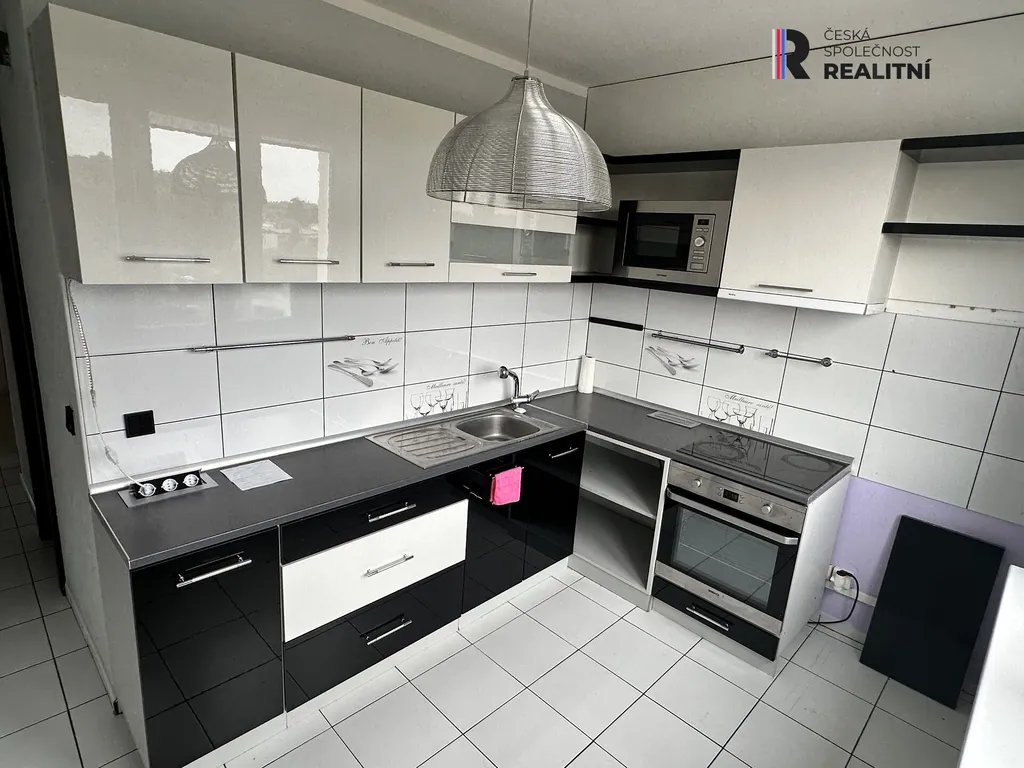 Byt disponuje vybavenou kuchyní (lednice, trouba, mikrovlnka), koupenou s vanou a zádveřím s pračku, samostatným WC, prostornou halou a třemi neprůchozími pokoji - 12m2, 8m2 a 17m2 se vstupem na lodžii a orientací na západ. K dispozici sklepní koje a další společné prostory v domě.