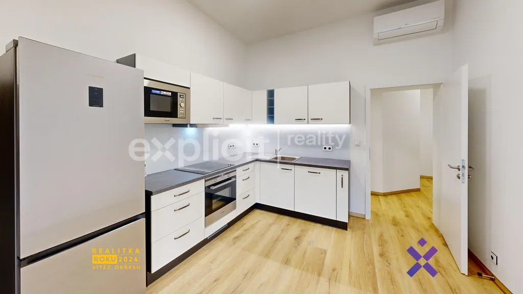 Byt je světlý, velmi prostorný a pronajímá se kompletně zařízený. Součástí vybavení je sedací souprava, LCD televize, manželská postel, skříně a další zařízení. Kuchyňská linka je vybavena elektrickou troubou, indukční varnou deskou, digestoří, vestavěnou mikrovlnnou troubou a lednicí.
