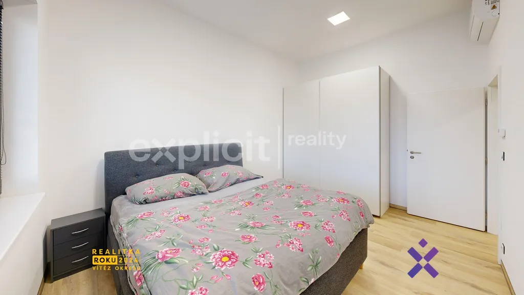 V bytě je podlahové vytápění, tři klimatizační jednotky, zabezpečovací alarm a elektrické venkovní rolety. Dispozice bytu: vstupní chodba, koupelna s vanou a WC, samostatné WC s umyvadlem, kuchyň, obývací pokoj a ložnice.