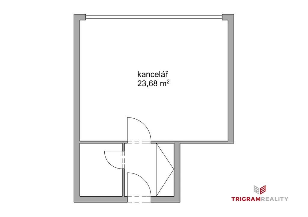 K dispozici je kancelář o výměře 23,68 m², umístěná v 3. NP