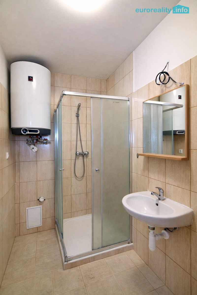 Dispozice bytu se skládá z velké obytné místnosti, samostatné kuchyně s kuchyňskou linkou včetně spotřebičů (trouba, varná deska, digestoř) a vestavných polic na potraviny, a koupelny se sprchovým koutem. Před vstupem do bytu se nachází menší prostor vhodný k posezení. Parkování je přímo u domu, před bytem.