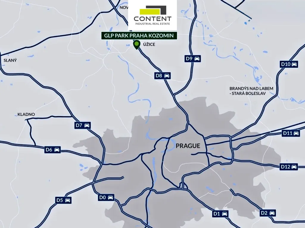 V zastoupení majitele a bez provize nabízíme prostory vhodné pro sklad, velkoobchod nebo výrobu, umístěné přímo u sjezdu z dálnice D8, EXIT 9 Úžice. Novostavba samostatné industriální budovy s celkovou výměrou 7600 m²: