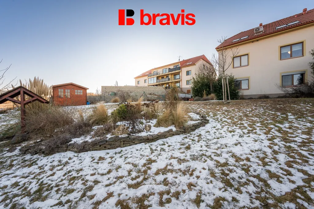 Srdcem bytu je otevřený obývací pokoj s moderní kuchyní na ploše 27,24 m², ze kterého vyjdete na terasu a zahradu o celkové ploše 623 m2. Na zahradě jsou vzrostlé ovocné plodící stromy a ovocné keře.