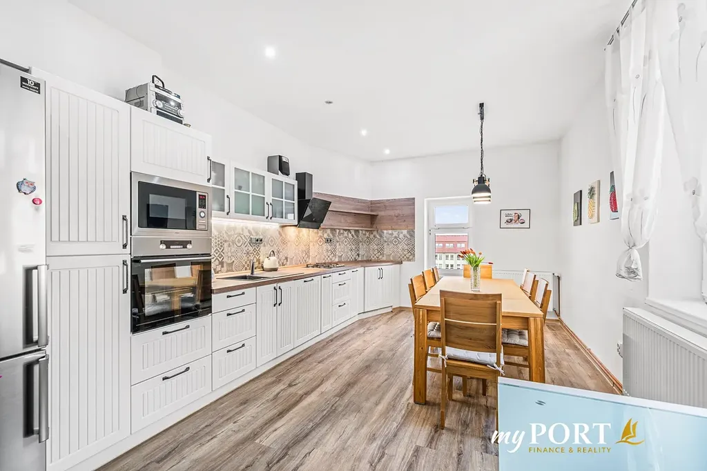V roce 2020 byt prošel částečnou rekonstrukcí. Byla rekonstruována koupelna, WC, dále pak kuchyně s novou kuchyňskou linkou a spotřebiči. V celé kuchyni byla opravena elektroinstalace. Ve stejném roce byly zrenovovány podlahy. Byt si přitom stále zachoval svůj původní charakter – najdete zde krásné interiérové dveře, původní dřevěné parkety a vysoké stropy, které dodávají prostoru osobitý styl.