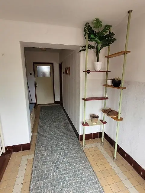 Na hlavní část domu navazuje upravená přízemní část s pultovou střechou a krytinou živičnou, užívaná jako byt 1+1 bez sociálního zařízení, s umývadlem, sporákem, kamny na tuhá paliva i zavedeným ústředním vytápěním z hlavní části domu. Na tuto část navazuje i původní prádelna a sklad paliva.
