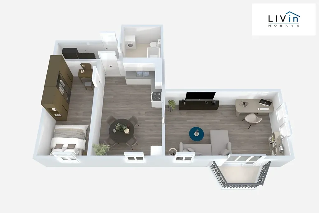 Byt je vhodný pro pár nebo maximálně 3 studenty.