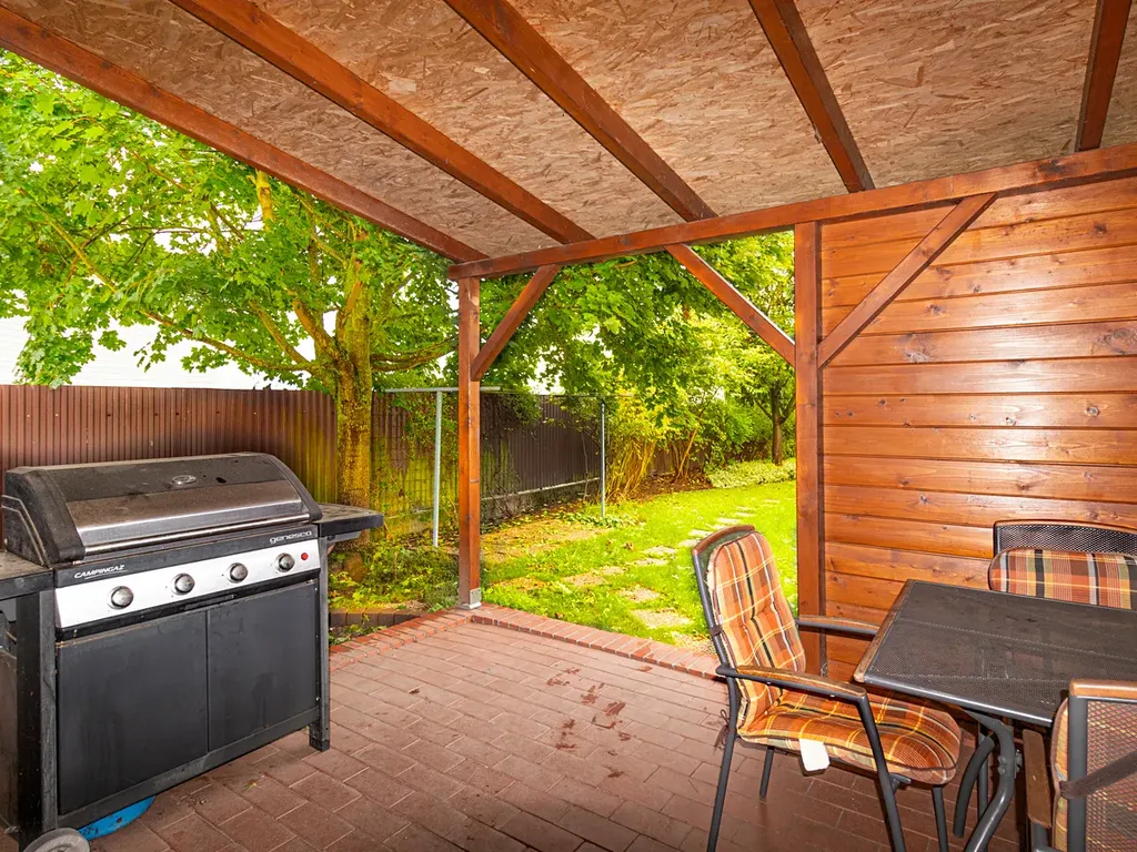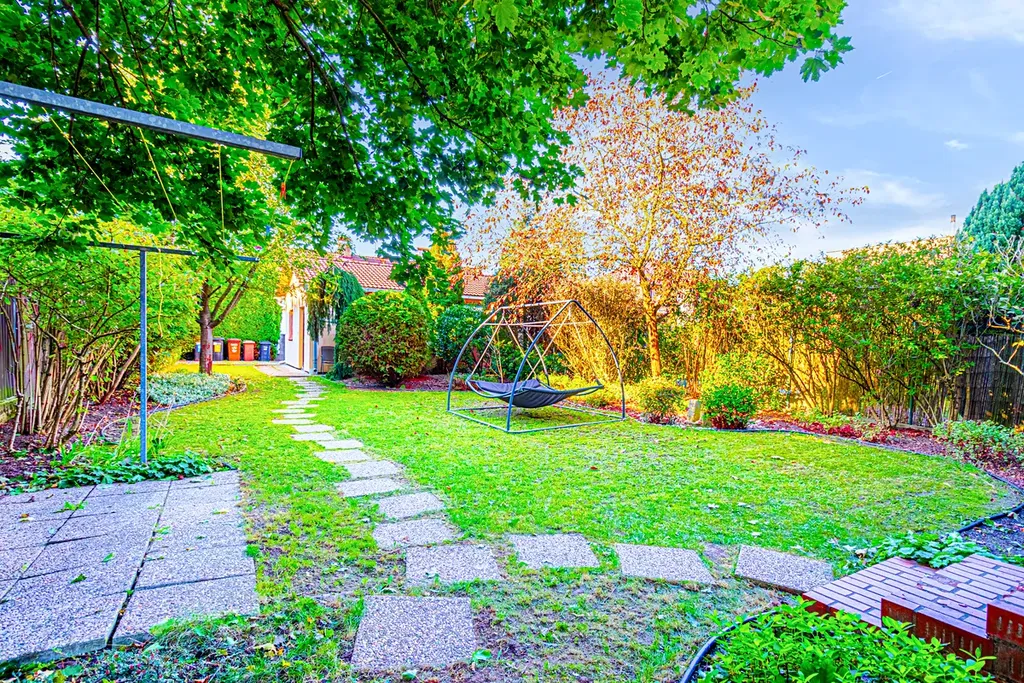 Jestli něco dělá dům domem, je to zahrada. Tato zahrada je ideálním místem k relaxaci a čerpání energie, nebo setkávání s přáteli. Nabízí posezení pod pergolou s přípojkou elektřiny a možnosti grilování. Představte si zapadající letní slunce, volný večer a zahradní gril – není to ideální způsob, jak strávit čas s rodinou nebo přáteli na čerstvém vzduchu společným ochutnáváním voňavých pokrmů? Je to prostě paráda…
