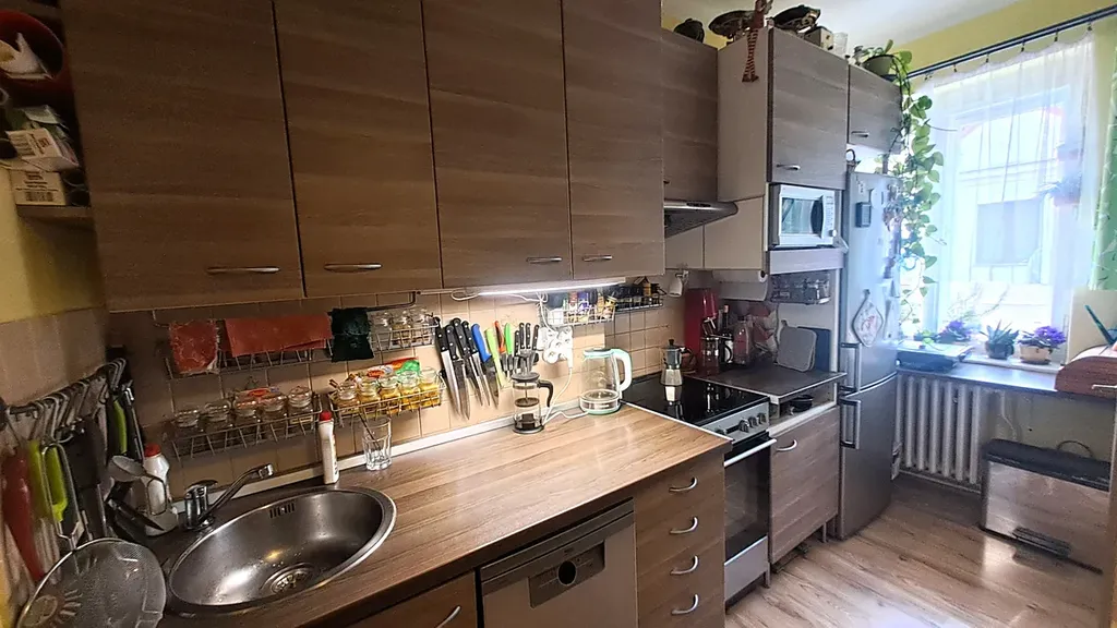 Nabízíme k pronájmu průběžně rekonstruovaný , částečně zařízený byt ( kuchyňská linka, skříň v předsíni, patro na spaní ) 2+1, 53m². Je umístěn ve 2. patře cihlového domu, kuchyň, spíž a jeden pokoj jsou orientovány do tiché ulice , druhý pokoj je orientován do zeleného vnitrobloku ( dům je ve svahu, tento pokoj je proto na úrovni třetího patra). Dispozičně je byt rozdělen na předsíň ,kuchyň, spíž, 2 pokoje a koupelnu s WC . Byt je po částečné rekonstrukci . Vytápění je řešené plynovým kotlem, kuch. linka je doplněna spotřebiči ( sporák, digestoř, lednice). Jde o útulný , světlý byt ve vyhledávané lokalitě. K bytu patří velký sklep 3m². Lokalita má veškerou občanskou vybavenost. Pro více informací kontaktujte přímo makléře