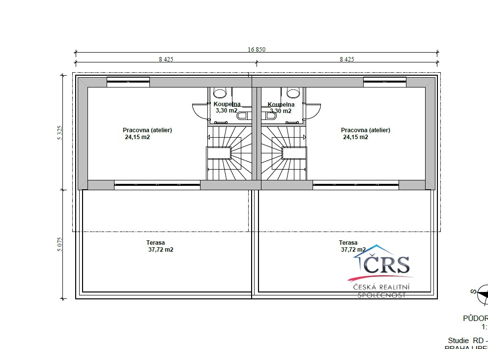 Každý dům dispozičně 6+kk s terasou ve třech patrech a celkem 4 parkovací místa.