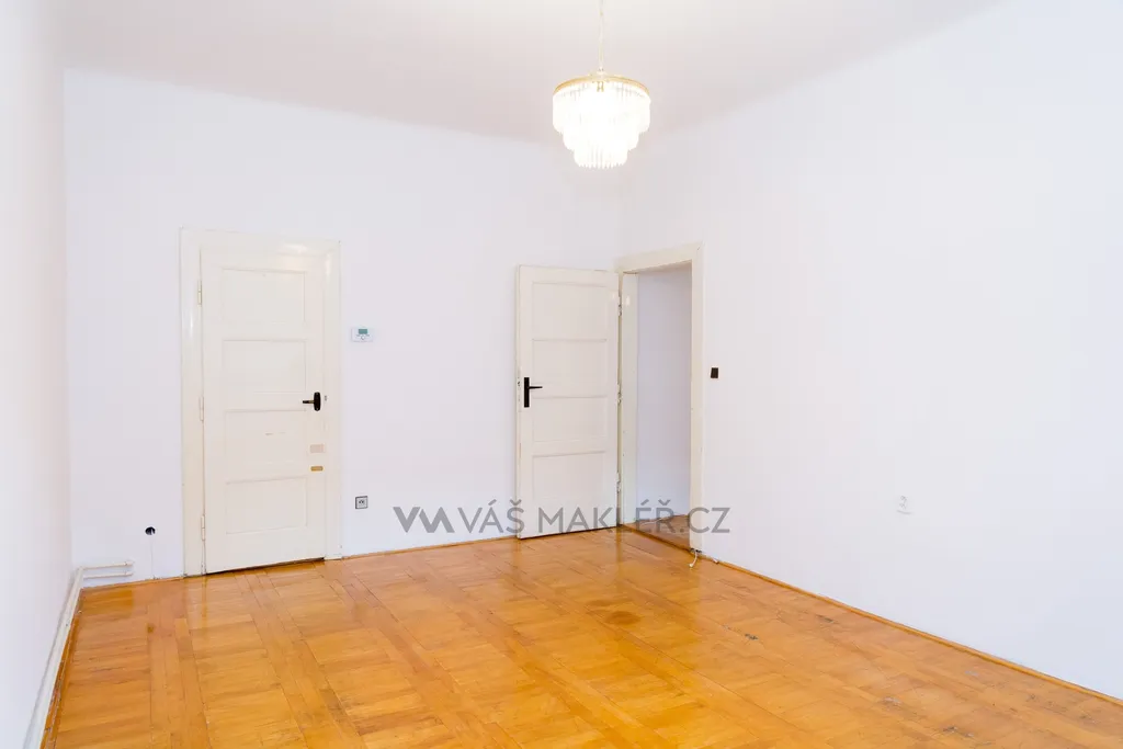 Kuchyně s pokojem pro služku: Kuchyně orientovaná do vnitrobloku disponuje přilehlou menší místností (bývalý pokoj pro služku). Tento cenný prostor navíc je ideální pro vybudování tiché pracovny, šatny, pokoje pro hosty, nebo pro zvětšení kuchyňského zázemí.