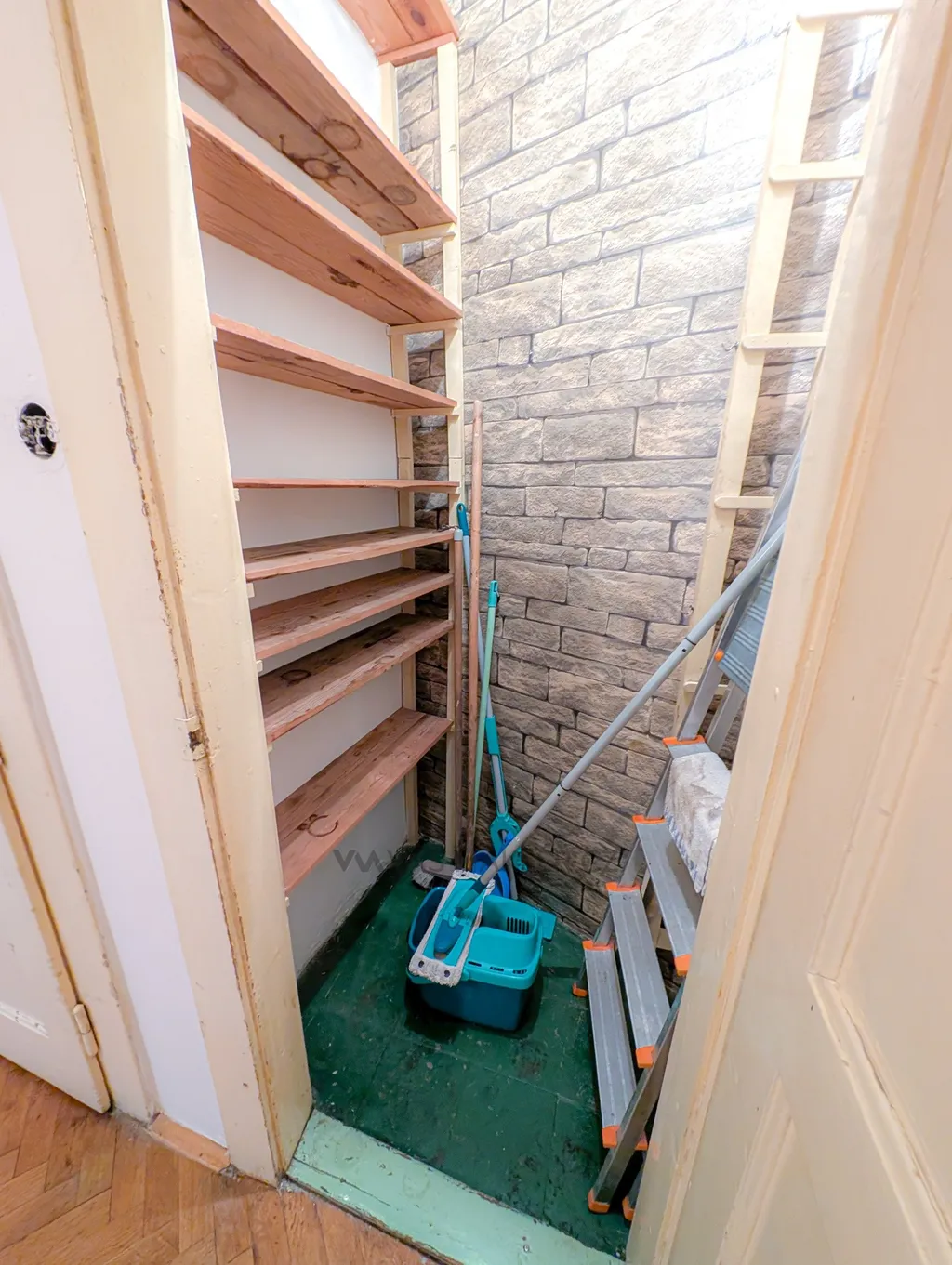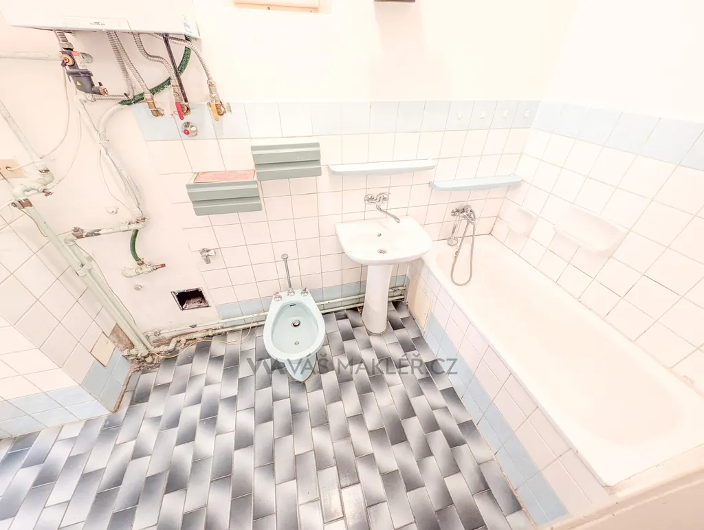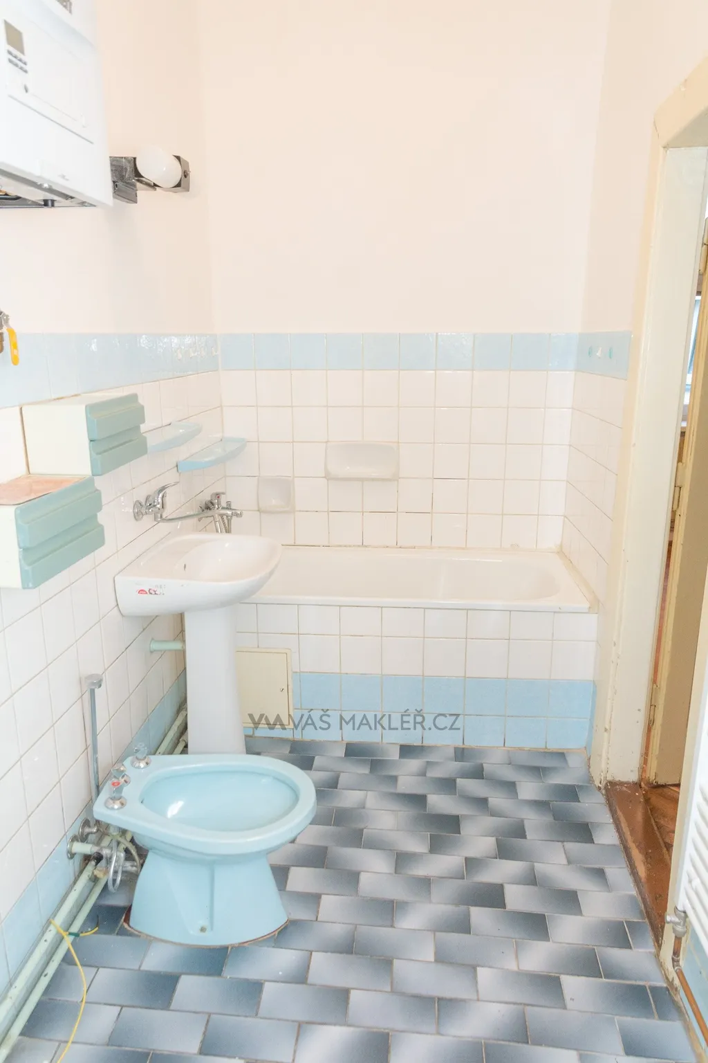 Zázemí: Samostatná toaleta a praktická komora/špajz pro uskladnění věcí. Průchozí koupelna s vanou, bidetem a oknem do světlíku (přirozené odvětrávání).