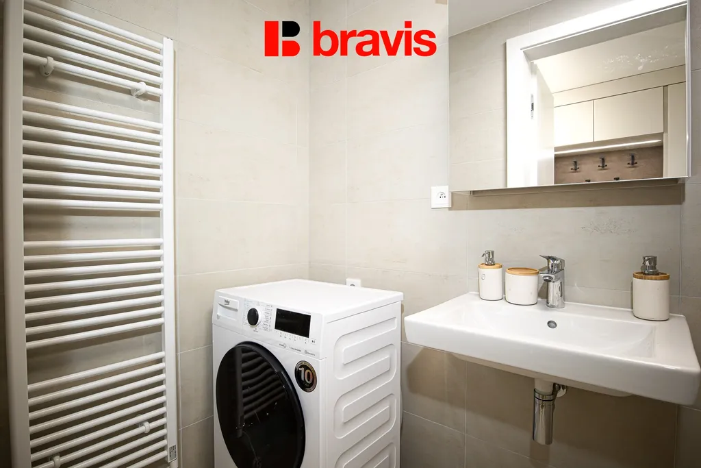 Lokalita Brno–Komín patří mezi velmi žádané části města. Nabízí klidné prostředí, výbornou dostupnost do centra Brna, na městský okruh i dálnice. Přímo před domem se nachází zastávka MHD. V blízkém okolí najdete obchod Lidl, obchodní centrum Javor, restaurace, lékárnu i další služby. Velkou výhodou je také blízkost Brněnské přehrady a okolní zeleně, ideální pro relaxaci po práci.