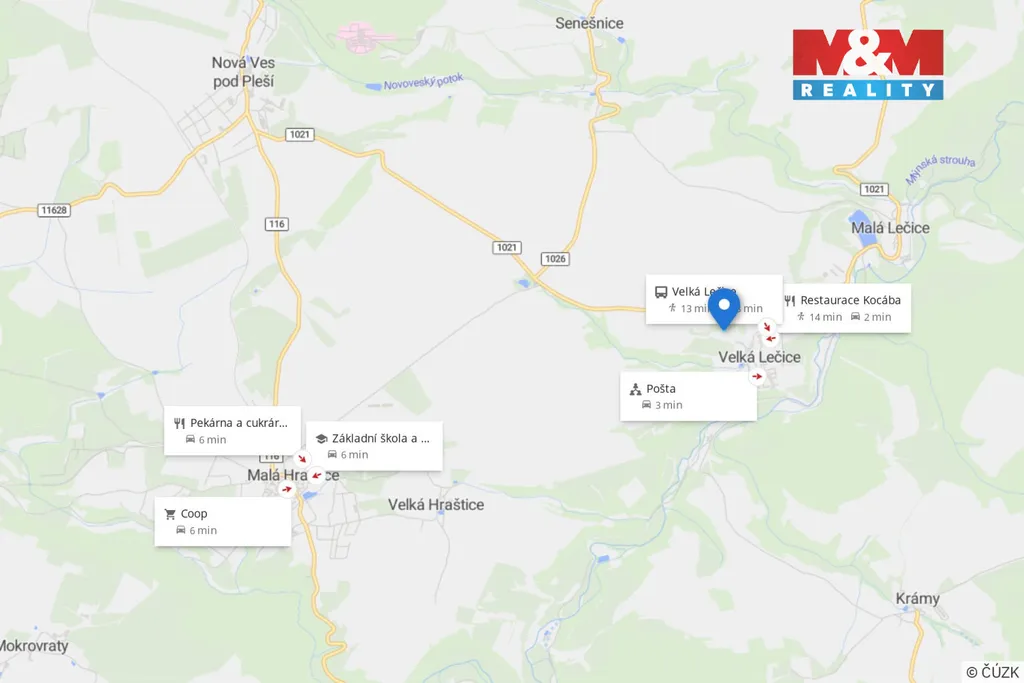 Nabízíme k prodeji pozemek k bydlení o rozloze 1214 m², situovaný na okraji malebné obce Velká Lečice. Tento pozemek je ideální pro ty, kteří hledají klidné místo pro svůj budoucí domov v dojezdové vzdálenosti od městské infrastruktury. Nemovitost se nachází v oblasti s dobrou dostupností a nabízí nádherný výhled na okolní krajinu. Na pozemku je umístěn mobilní dům s dřevěnou konstrukcí o dispozici 2kk (35 m²) s terasou, kde je zaveden elektrický proud. Zdroj vody je přiveden ze studny, která se nachází na parcele. Odpady jsou řešeny čističkou odpadních vod. Pro výstavbu rodinného domu je k dispozici zhotovený projekt. Přístup k pozemku je zajištěn obecní komunikací. Nepropásněte příležitost investovat do této atraktivní lokality, která kombinuje pohodlí venkovského bydlení s blízkostí městských služeb. Koupi nemovitosti lze financovat hypotečním úvěrem, který Vám zdarma pomůžeme vyřídit. Těším se s Vámi na prohlídku.