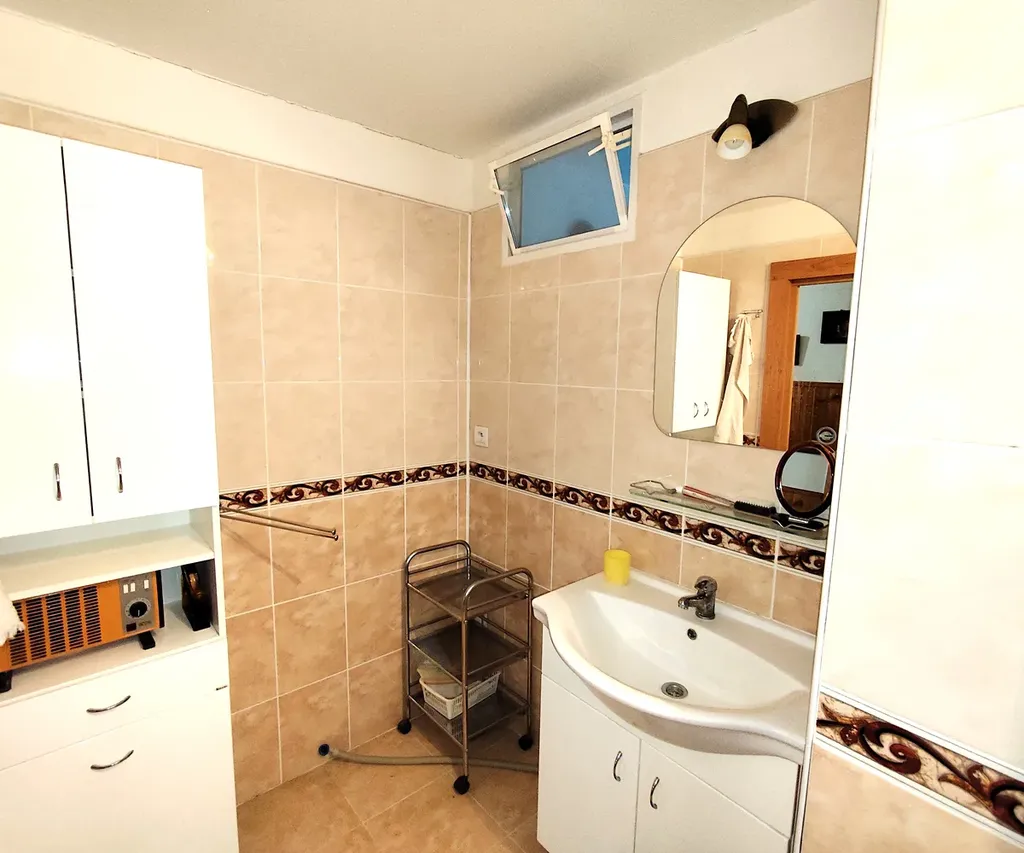 Interiér bytu je velmi dobře udržovaný. Podlahy jsou řešeny kombinací dlažby a plovoucí podlahy, což zajišťuje nejen příjemný vzhled, ale i snadnou údržbu. V chodbě byla nově položena dlažba, která dodává prostoru elegantní a čistý dojem. Byt disponuje zděným jádrem a nově zrekonstruovanou koupelnou. Praktickým benefitem je komora přímo v bytě a další komora umístěná na společné chodbě, která poskytuje další úložný prostor.