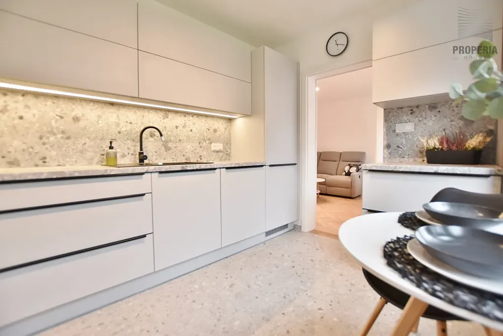 Na základě výhradního zastoupení Vám nabízíme k pronájmu plně vybavený luxusní byt 2+1 po kompletní velice zdařilé rekonstrukci. Nově zrekonstruovaná jednotka na Vás dýchne novotou a okouzlí Vás praktičností a geniálně řešenými úložnými prostory, jako jsou skrytá prostorná šatna a technická místnost, ve které najdete novou pračku a sušičku AEG. Celková výměra je 58 m2. K dispozici je zasklená lodžie s výměrou 5 m2. Byt je umístěn ve 3. podlaží domu s výtahem. K dispozici máte kolárnu /kočárkárnu a sklepní kóji. Díky svému umístění najdete v bezprostřední blízkosti nákupní středisko, kde se nachází komplexní služby včetně lékárny, pošty, restaurace. Byt se pronajímá včetně nového zařízení jako je například nová kuchyňská linka včetně spotřebičů. Cena za pronájem činí 21.000,- Kč + zálohy na služby 5.000,- Kč/pro dvě osoby. Vratná kauce 2 nájmy. Volný již od 1.2.2026. Pro více informací nebo sjednání prohlídky kontaktujte makléře.