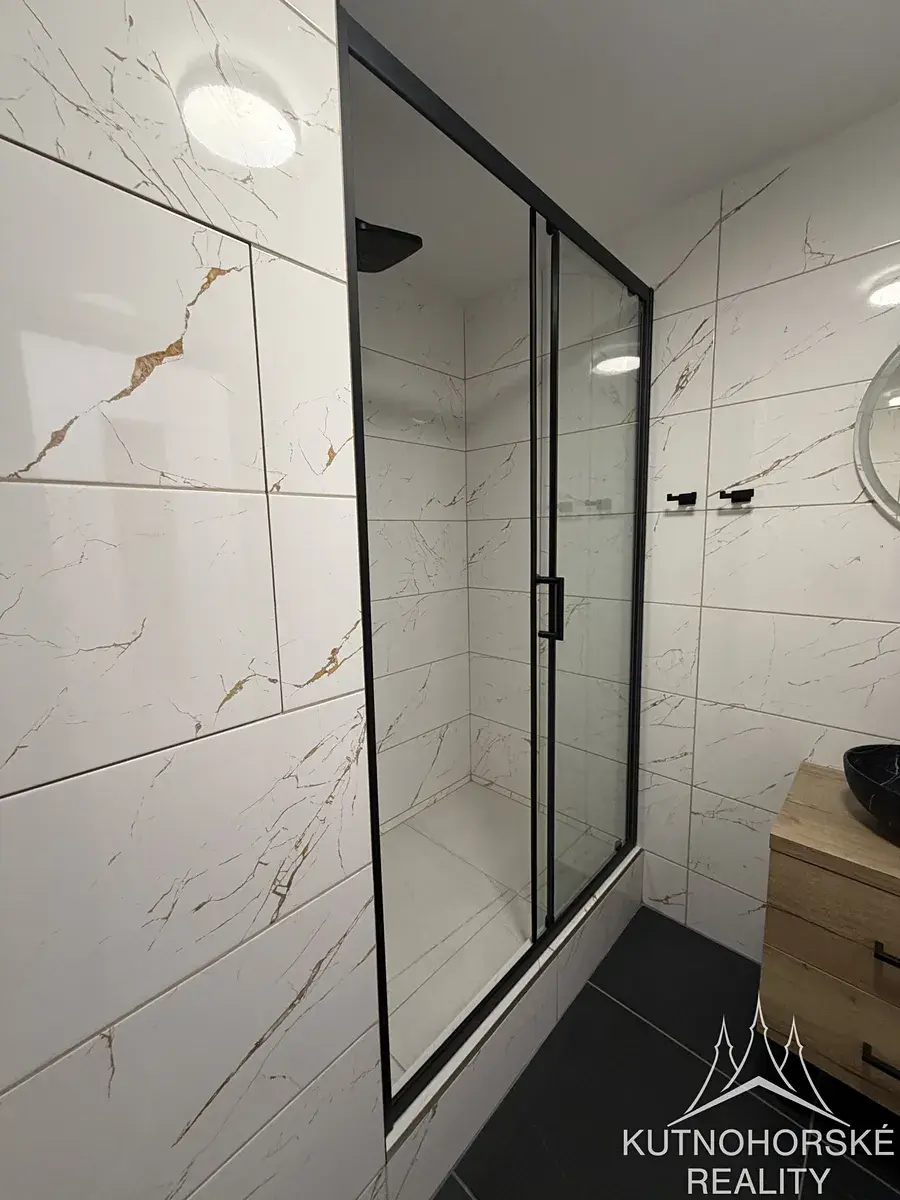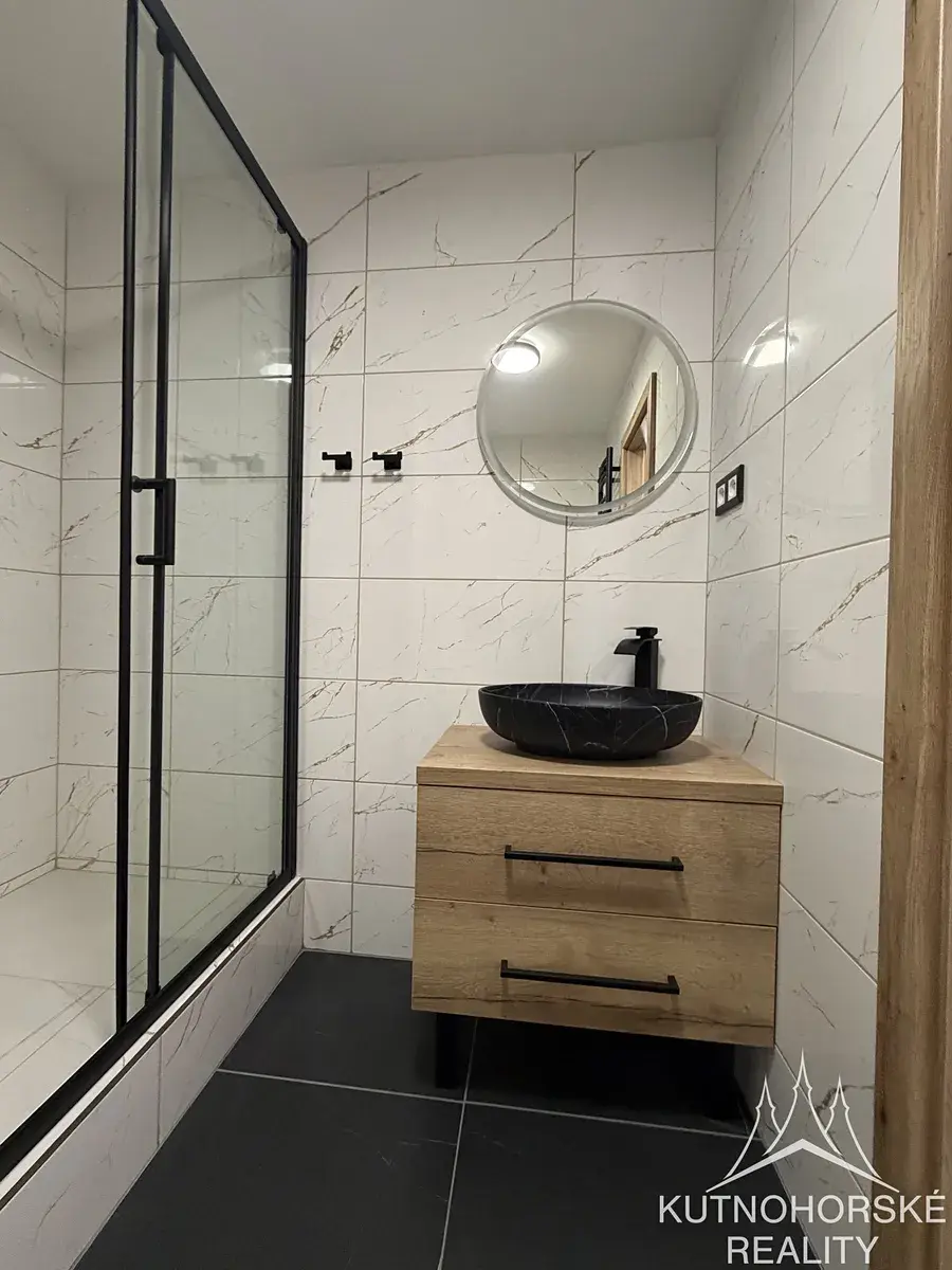 Nová kuchyňská linka se spotřebiči, nová koupelna se sprchovým koutem.