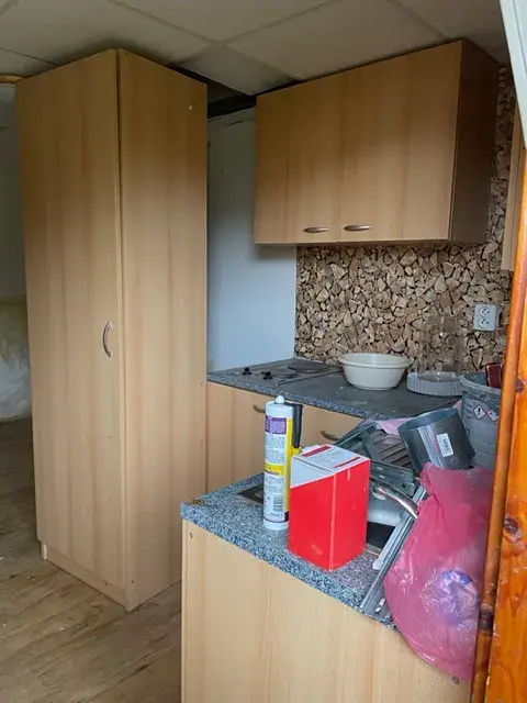 Na zahradě je postavená chatka s malou kuchyňskou linkou a novými kamny. Na pozemku se nachází solární sprcha a studna.