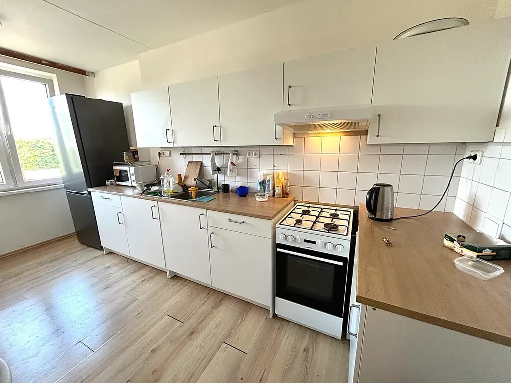 Byt je zařízený. Kuchyň je vybavená kuchyňskou linkou a elektrospotřebiči.