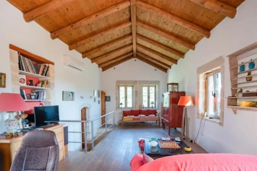Nemovitost je vybavena klimatizační jednotkou pro chlazení i ohřívání v každém pokoji, vybavenou kuchyní, moskytiérami, krbem, solárním panelem pro ohřev vody. Parkovat čtyři automobily lze na vyhrazeném venkovním místě. Relaxovat můžete u bazénu s dlážděnou terasou ke slunění, nebo se procházet v zahradě, plné středomořské flóry. Rostou v ní pomerančovníky, citroníky, granátová jablka, fíkovníky, bugenvilea a jiné popínavé rostliny, a především 42 olivovníků. Vzdálenost k moři a pláži je přibližně 10,4 km, což je asi 17 minut jízdy autem. Do centra Rethymna se autem dostanete asi za 20 minut, na lokality jako Plakias nebo Preveli zhruba 30 minut.