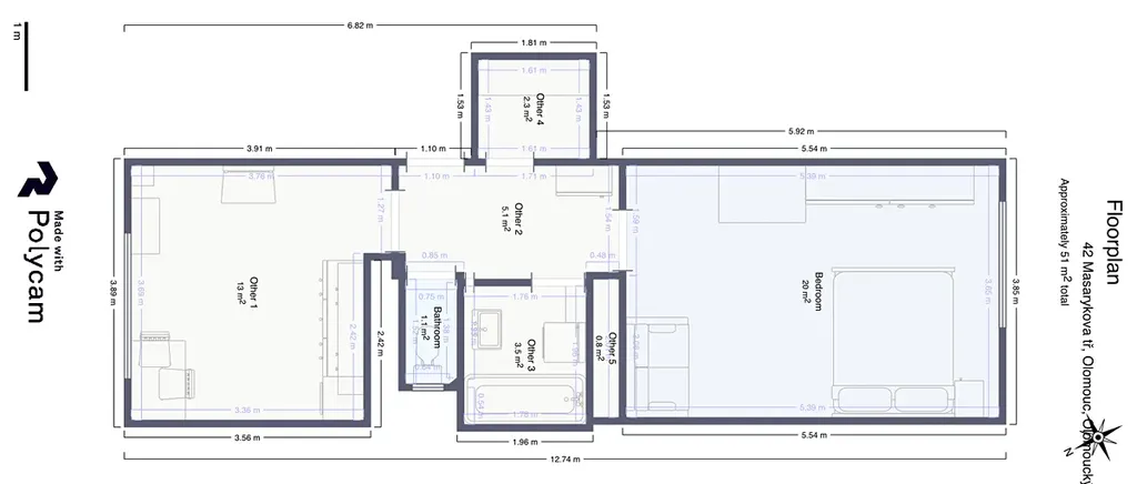 Nabízíme k prodeji prostorný byt o dispozici 1+1 s možností snadné přestavby na 2KK díky velkorysé výměře 51 m. Byt se nachází ve druhém patře cihlového domu na prestižní adrese Masarykova 42.