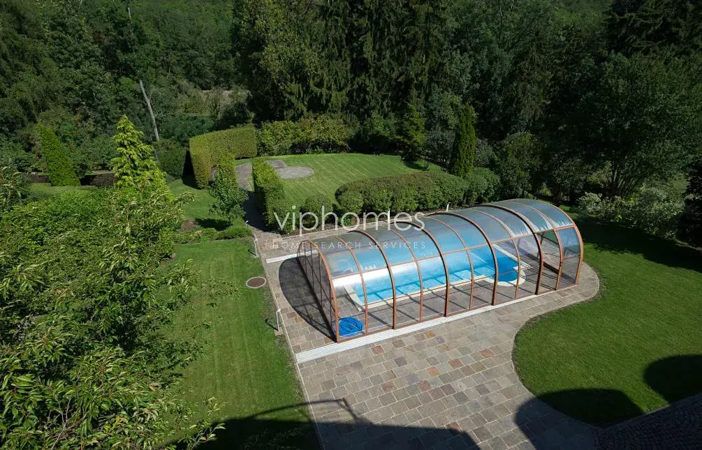 Venkovní krytý vyhřívaný bazén, mramorové obklady a dlažba, velká okna s nádherným výhledem, dubové podlahy, vytápěná dlažba v koupelnách, efektní vodovodní a sprchové baterie, luxusní kuchyň, vestavěné skříně, WiFi internet, video intercom, alarm. Celý dům je klimatizován.