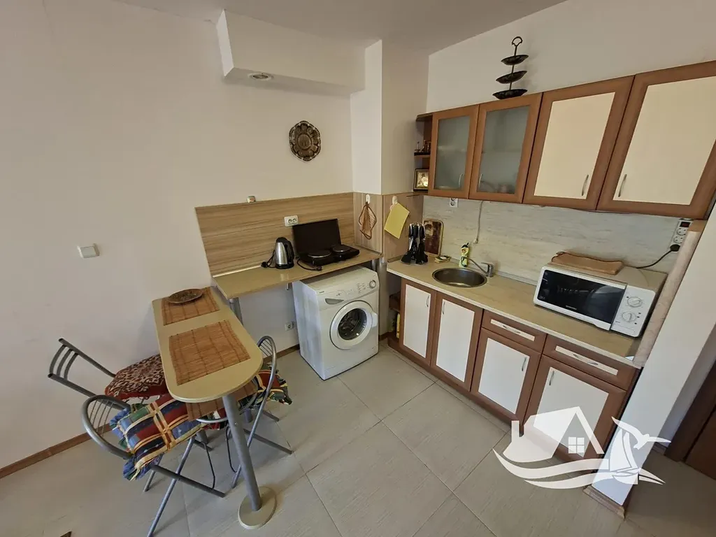 Velkou výhodou je samotná poloha. Supermarket Mladost je vzdálený necelé tři minuty chůze, pláž přibližně 745 metrů. V okolí najdete restaurace, kavárny, obchody s ovocem a zeleninou, lékárnu, autobusové nádraží i další služby. Slunečné pobřeží nabízí bohatý letní i mimosezónní život, dlouhé písečné pláže, promenádu, sportovní aktivity, vodní parky i snadnou dostupnost historického Nesebaru.