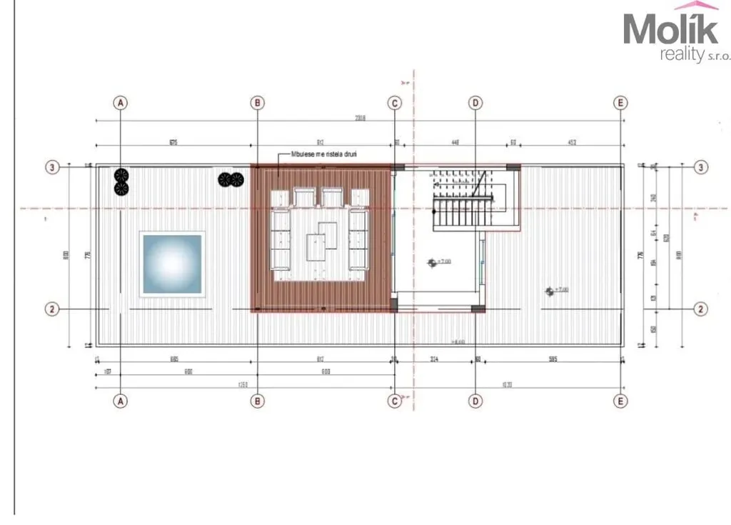 Otevřený obývací prostor s přímým přístupem k bazénu, obklopený ze 2 stran okny s orientací na jihozápad, kde bude přirozené světlo nedílnou součástí dne