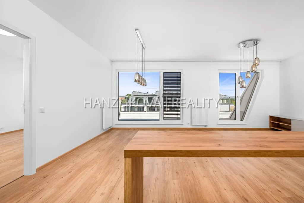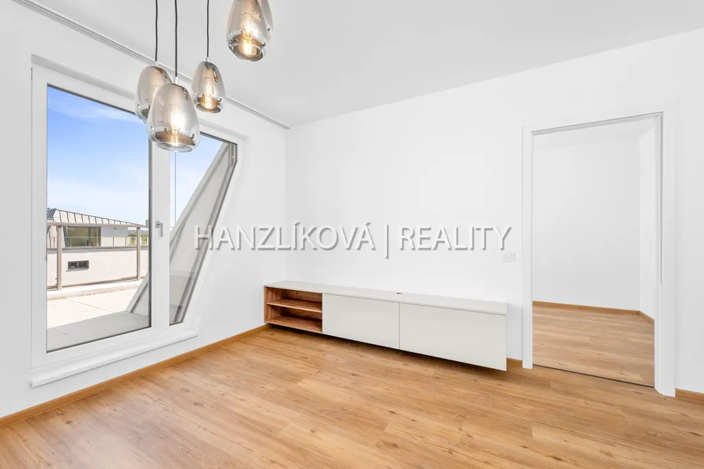 Nabízíme k pronájmu nadstandardní bytovou jednotku A.P.3 - byt 3+kk s prostornou terasou ve 4. NP v nově zkolaudovaném bytovém domě "terasy Branišovská". Bytová jednotka se nachází ve třetím - posledním patře ( 4. NP) budovy A a skládá se z těchto místností : vstupní hala s o výměře 4,9m2, koupelna s toaletou o výměře 6 m2, obývací pokoj s částečně odděleným kuchyňským koutem o výměře 31,7m2, pokoj se šatnou a druhou koupelnou 20,1 m2, pokoj 11,8 m2. Ze všech obytných místností je vstup na prostornou terasu, která je podél celého bytu a má výměru 30m2. celý byt včetně terasy je orientovaný na východ mimo silnici.