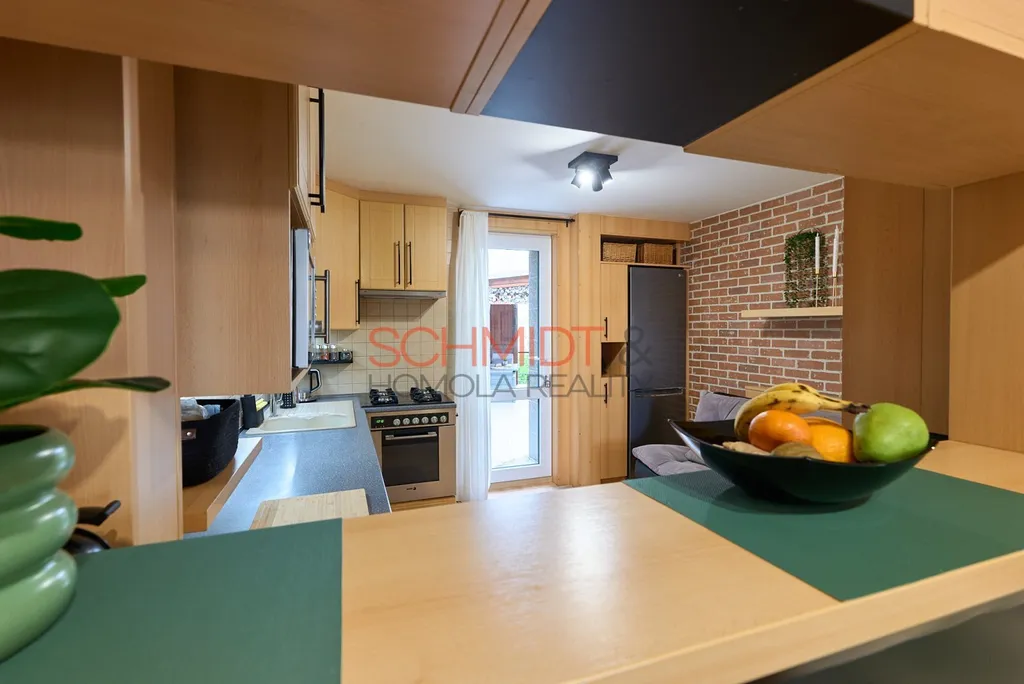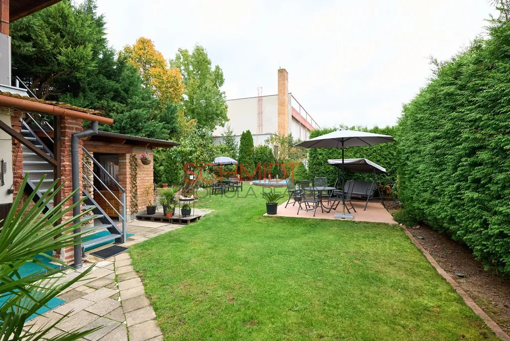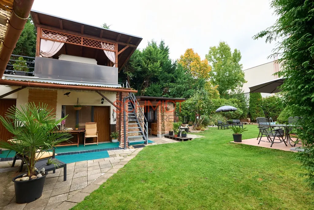 Bazén, kryté posezení, ovocné stromy, to je jen slabý výčet toho, co vše rovinatá a udržovaná zahrada nabízí. Pozemek má celkovou výměru 933 m², z toho zastavěná plocha domem činí 197 m².