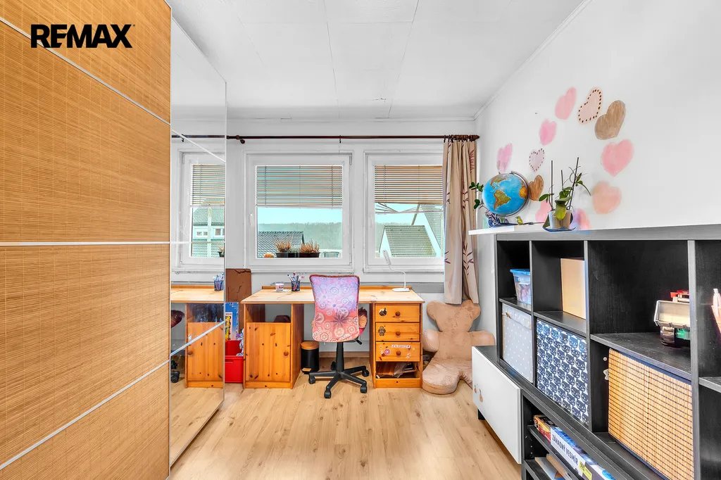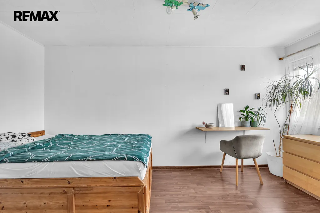 V patře se nachází další dva pokoje, obývací pokoj propojený s kuchyní a koupelna se záchodem. Celý dům působí vzdušně a prakticky, takže se tu bude dobře bydlet jak rodině s dětmi, tak i těm, kteří chtějí víc prostoru pro práci z domova nebo své koníčky. Bonus navíc je půda, která nabízí další úložné možnosti.