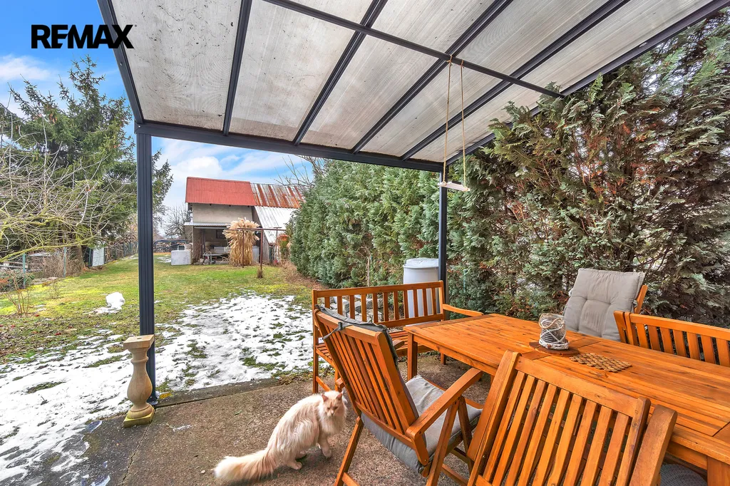 Za domem se nachází zahrada, která nabízí dostatek prostoru pro odpočinek, grilování, dětské hry nebo třeba vlastní záhonek. Na pozemku stojí i další budova, která může posloužit jako dílna, sklad nebo třeba zázemí pro zahradní techniku.