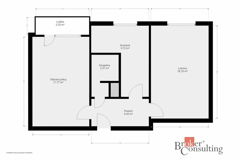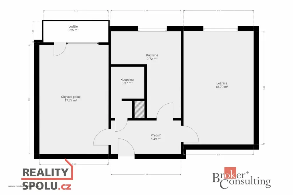 Byt je o ploše 57 m², s lodžií (3 m²) a prostorným sklepem (9 m²).