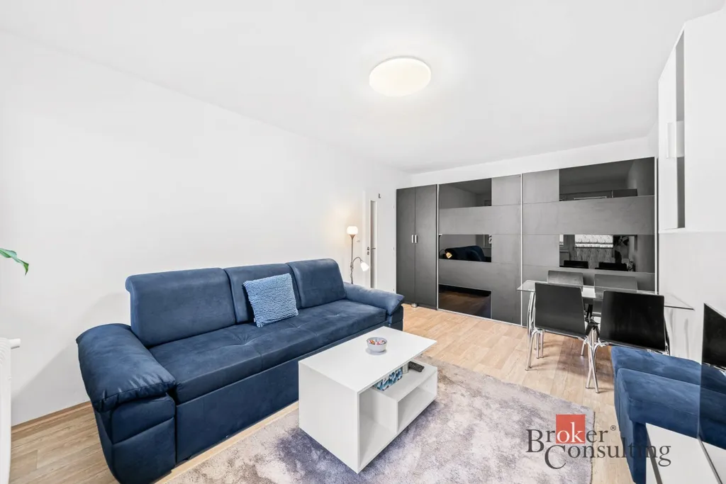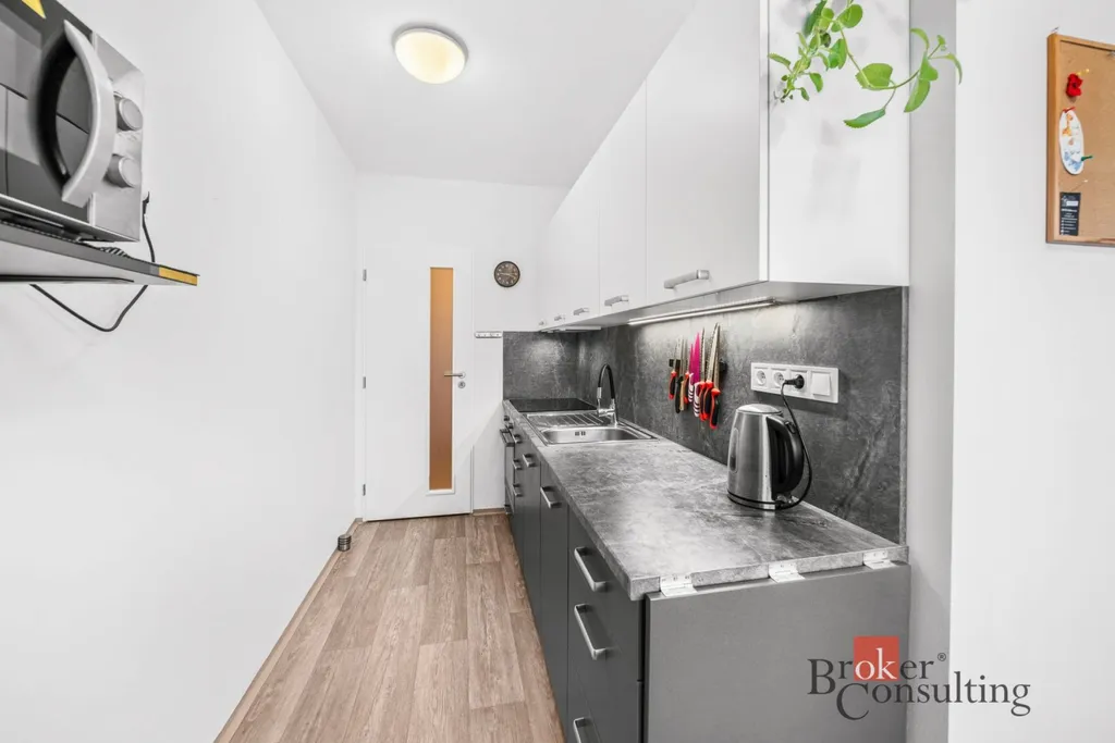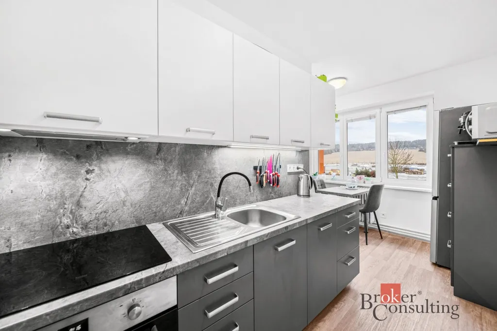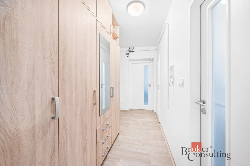 Byt se nachází v 1. patře zatepleného cihlového domu, je orientovaný na západ a má praktickou dispozici s neprůchozími místnostmi. Pronajímá se kompletně vybavený moderním nábytkem a spotřebiči (pračka, myčka, lednice s mrazákem, trouba, varná deska, mikrovlnná trouba, TV).