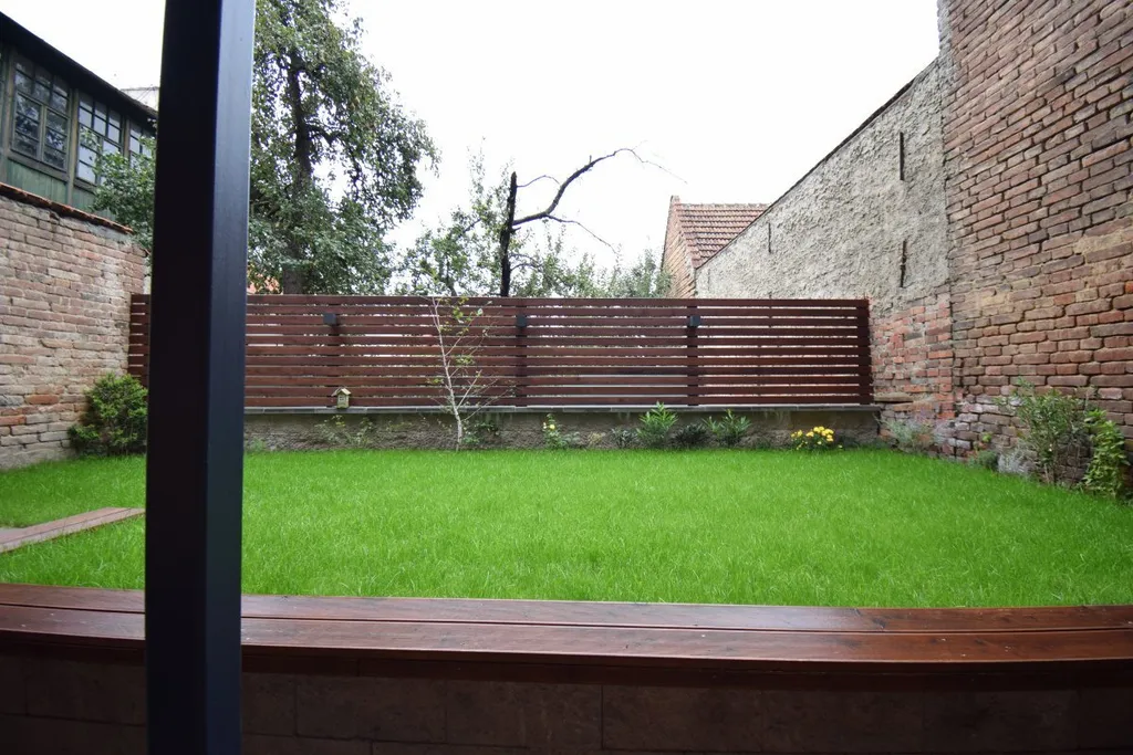 Byt se nabízí částečně vybavený. V designové kuchyni najdeme elektrickou varnou desku, myčku, digestoř, elektrickou troubu a lednici. Obývací pokoj disponuje pohovkou, konferenčním stolkem a televizí. Dále zde najdeme jídelní stůl se židlemi. Ložnice je vybavena manželskou postelí. Z obývacího pokoje i z ložnice můžeme vstoupit na terasu a upravenou zahrádku. V koupelně je k dispozici sprchový kout, umyvadlo a toaleta. K dispozici zůstává i pračka a sušička. V zádveří najdeme praktické skříně.
