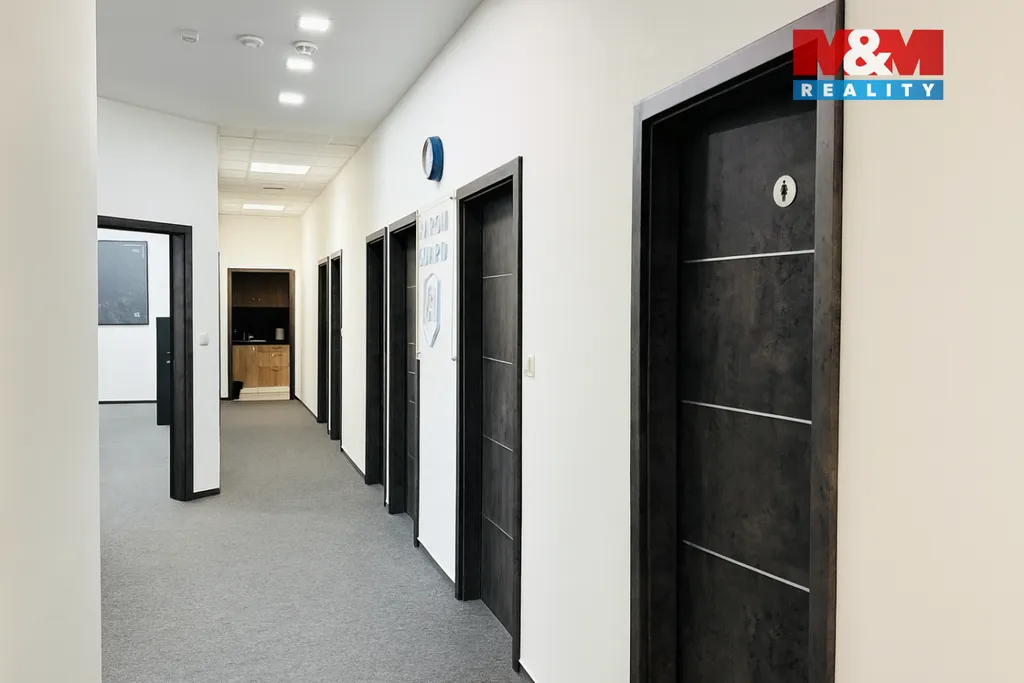 Nabízíme k prodeji moderní kancelářské prostory o celkové ploše 179 m² v přízemí bytového domu z roku 2016 v Klecanech u Prahy. Prostory prošly kompletní rekonstrukcí v roce 2022 a jsou ve výborném stavu. K dispozici je 6 samostatných kanceláří, open office pro 3 pracoviště, velká zasedací místnost až pro 18 osob, kuchyňka, dvě technické místnosti, pánské i dámské toalety a místnost s vlastním vchodem a koupelnou s WC. Prostory jsou vybavené nábytkem, na podlaze jsou zátěžové koberce. Vytápění zajišťuje centrální plynový kotel, objekt je napojen na veřejný vodovod, kanalizaci a elektřinu. K dispozici jsou tři vyhrazená parkovací stání přímo před kanceláří, navíc u domu se nachází velké parkoviště. Stanice metra je vzdálená cca 15 minut. Cena bez DPH. Kanceláře jsou připravené k okamžitému využití a představují ideální volbu pro firmu, která hledá moderní, klidné a dostupné zázemí v blízkosti Prahy. V případě Vašeho zájmu neváhejte kontaktovat makléře!