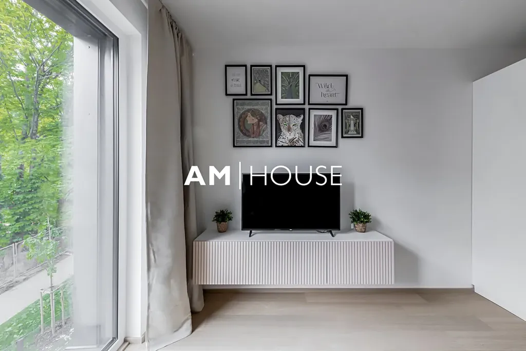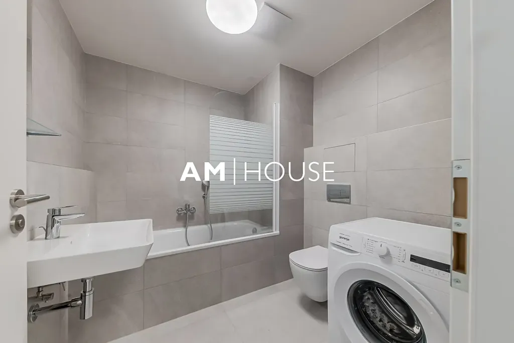 Dispozice jednotky se skládá z obývacího pokoje s vybavenou kuchyňskou linkou. V privátní části bytu je ložnice. Byt má koupelnu s vanou, umyvadlem, WC. K dispozice je komora s šatnou a pračkou.