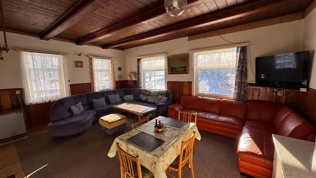 Nabízíme k prodeji prostornou chalupu 200 m² s garáží, která se nachází v malebné horské krajině Jizerských hor v obci Kořenov - Polubný.