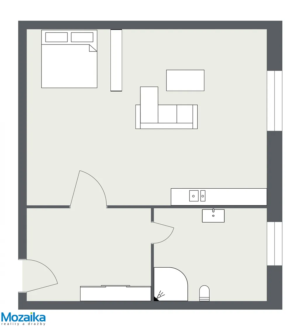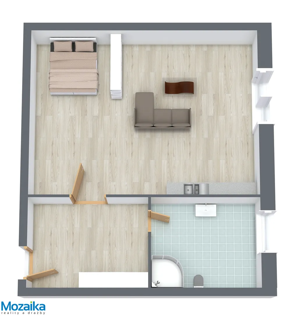 Vstoupíte do příjemné předsíně o rozloze 4,9 m², která slouží jako vstupní zóna bytu a nabízí dostatek prostoru pro odkládání obuvi a svrchního oblečení. Odtud se dostanete do prostorného obývacího pokoje s praktickým kuchyňským koutem o výměře 23 m², který tvoří hlavní obytný prostor bytu. Tato místnost je světlá, vzdušná a příjemně řešená, poskytuje dostatek místa pro odpočinek, vaření i stolování. Z obývacího pokoje máte přímý vstup na útulný balkon o rozloze 4 m², kde si můžete vychutnat ranní kávu, relaxovat s knihou nebo si zde pěstovat své oblíbené květiny a bylinky.