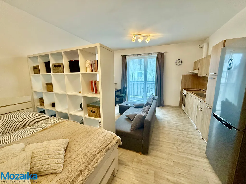 Byt je pronajímán částečně vybavený, což vám výrazně usnadní nastěhování. K dispozici máte kvalitní kuchyňskou linku s veškerým potřebným vybavením pro přípravu jídel, pohodlnou postel pro klidný spánek, praktický regál pro ukládání věcí, jídelní stůl se židlemi pro příjemné stolování a prostornou šatní skříň pro vaše oblečení a doplňky. Můžete se tedy nastěhovat prakticky jen s kufrem a začít ihned žít plnohodnotným životem.