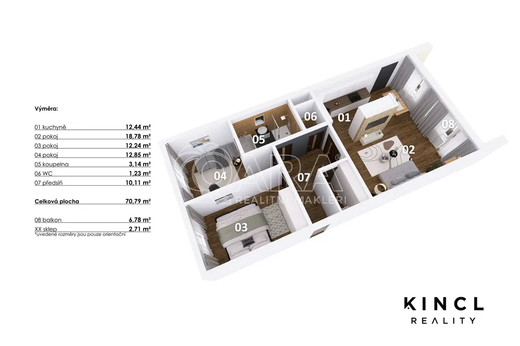 Dispozice 3+kk vznikla propojením kuchyně s obývacím pokojem, čímž vznikl vzdušný a světlý prostor, kde se přirozeně odehrává každodenní život. Obývací pokoj je orientovaný na jih, takže je tu dostatek denního světla i v zimních měsících, a v létě oceníte balkon na slunné straně. Ložnice na severní straně naopak nabízí příjemný chládek pro klidný a nerušený spánek.