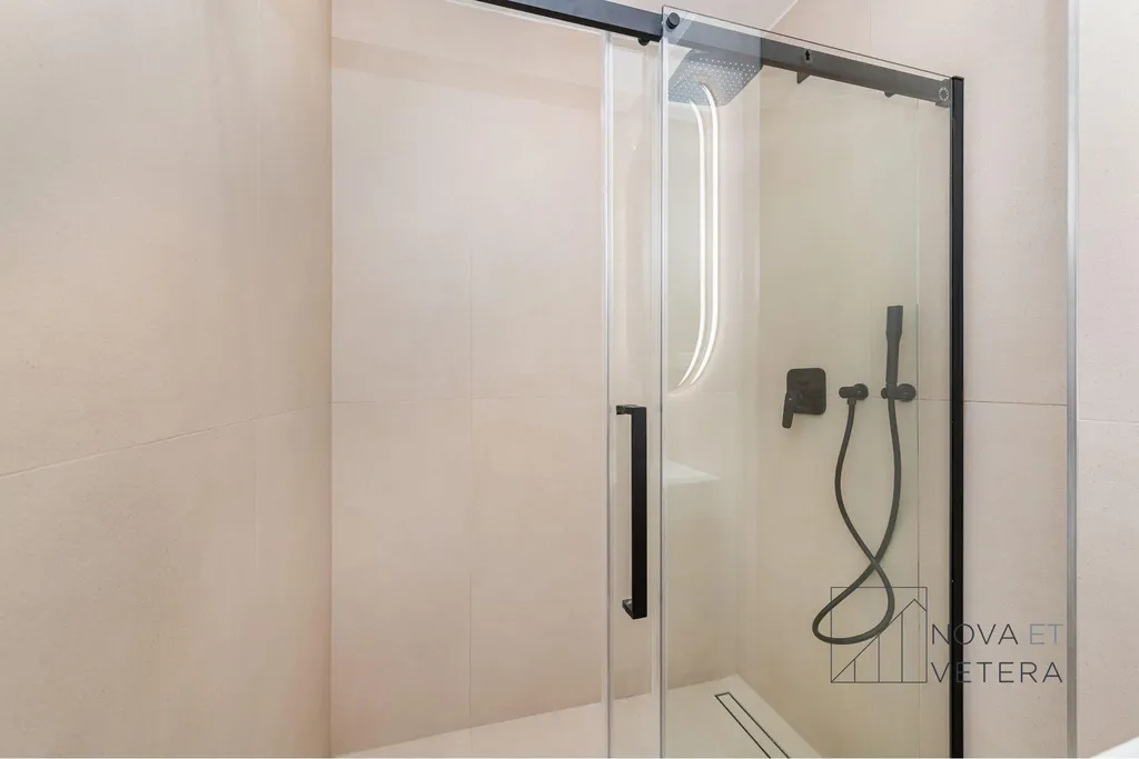 Byt právě prošel kompletní rekonstrukcí, která zahrnuje nové rozvody elektřiny, vody a odpadů, moderní podlahové krytiny, nové obklady a sanitu, interiérové dveře i celkovou obnovu vybavení. Součástí standardu je také kuchyňská linka se značkovými spotřebiči značky Gorenje s pětiletou zárukou.