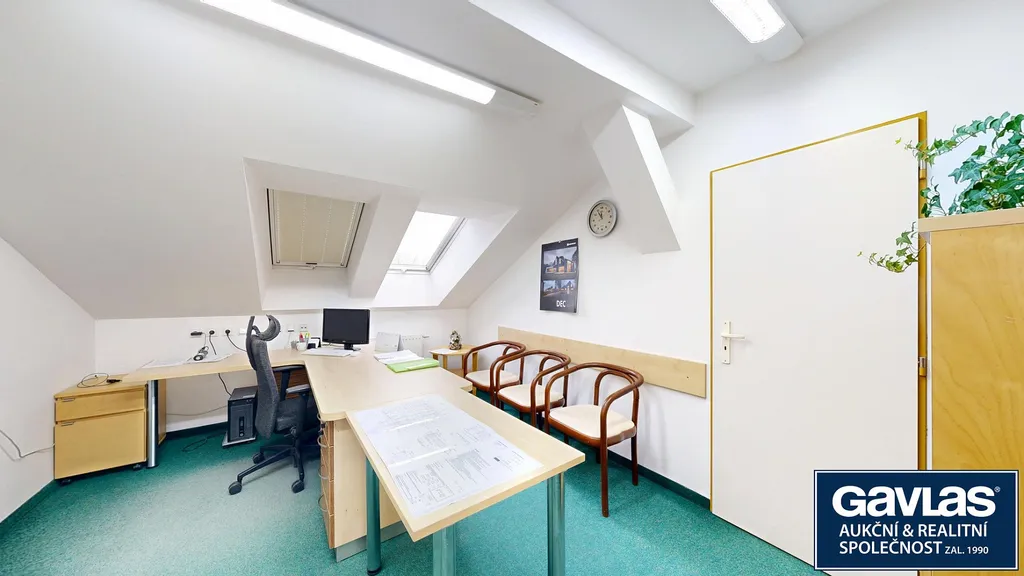 • Kancelářské prostory jsou světlé, dobře dostupné a esteticky podpořené historickými prvky fasády i interiéru.