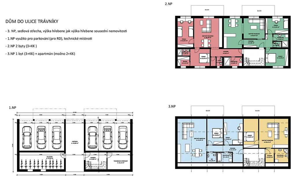 Je zpracovaný s předjednaný projekt na 3 hmoty - objekt o 4 jednotkách směrem do ulice Trávníky, střední objekt vinařství a navazujícího zázemí + ubytování pro vinaře, degustační a prezentační prostory (a samozřejmě výroba a skladování), v horní části pak objekt se 4 luxusními jednotkami s nádherným výhledem do okolí. Velkou výhodou je i možnost zajištění dostatečného počtu parkovacích stání a zároveň i případně zachování vjezdu pro manipulační vinařskou techniku.
