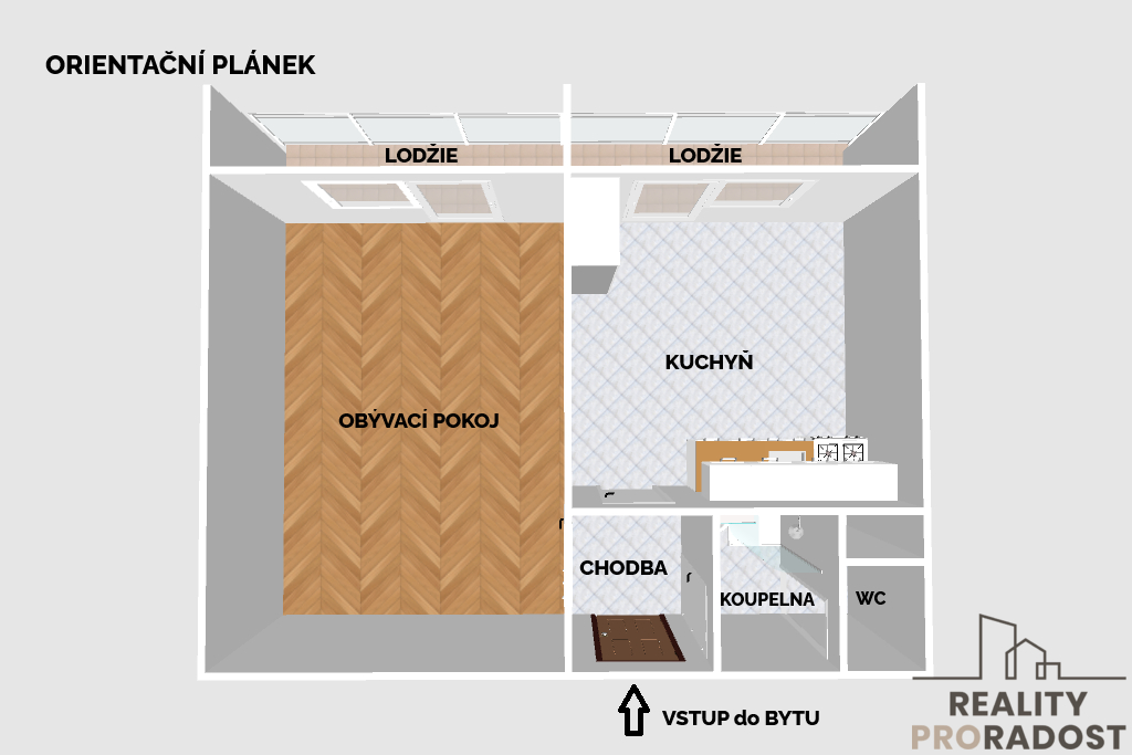 Velkou předností bytu jsou dvě lodžie – u každé místnosti jedna. Byt je orientován na jihovýchod.