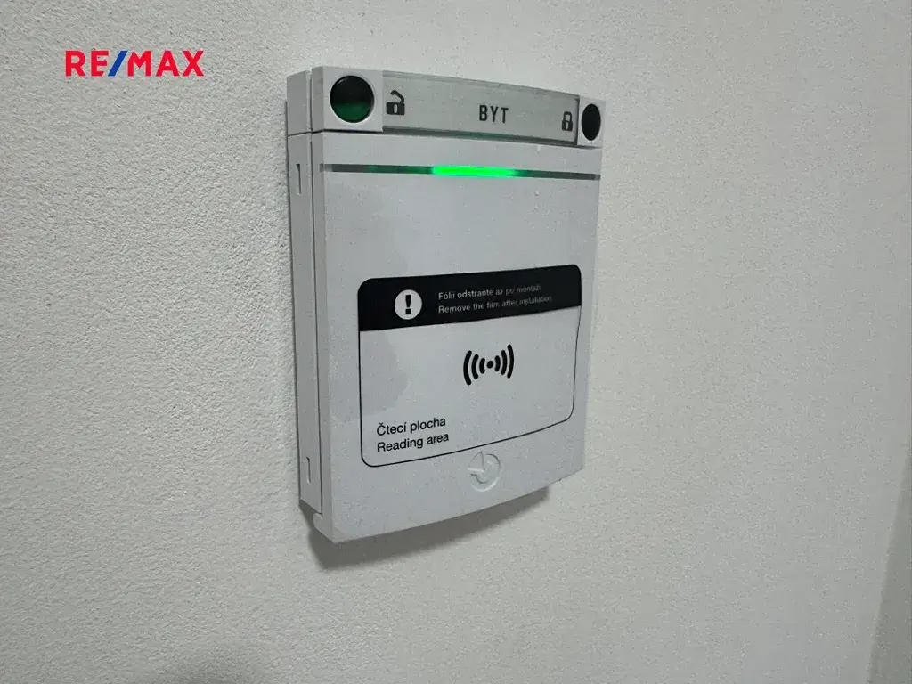 Vytápění bytu a ohřev teplé vody zajišťuje centrální kotel v domě. Vytápění v celém bytě je podlahové. V bytě je instalovaný zabezpečovací systém Jablotron s možností kódování čipem. Možnost připojení k internetu.